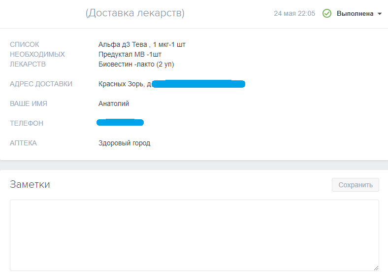 Уточняем детали заказа лекарств и подтверждаем заявку.